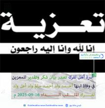 أسرة أهل لفرك تصدر بيان شكر وتقدير للمعزين في وفاة ابننا أحمد ولد أحمد سالم ولد أعل ولد لفرك الملقب ( الداه )