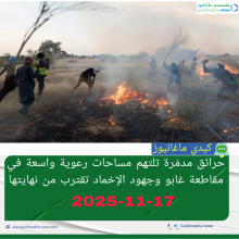 حريق هائل على مشارف مدينة كوري ودعوة في المساجد للتدخل لصدها عن مقبرة المدينة