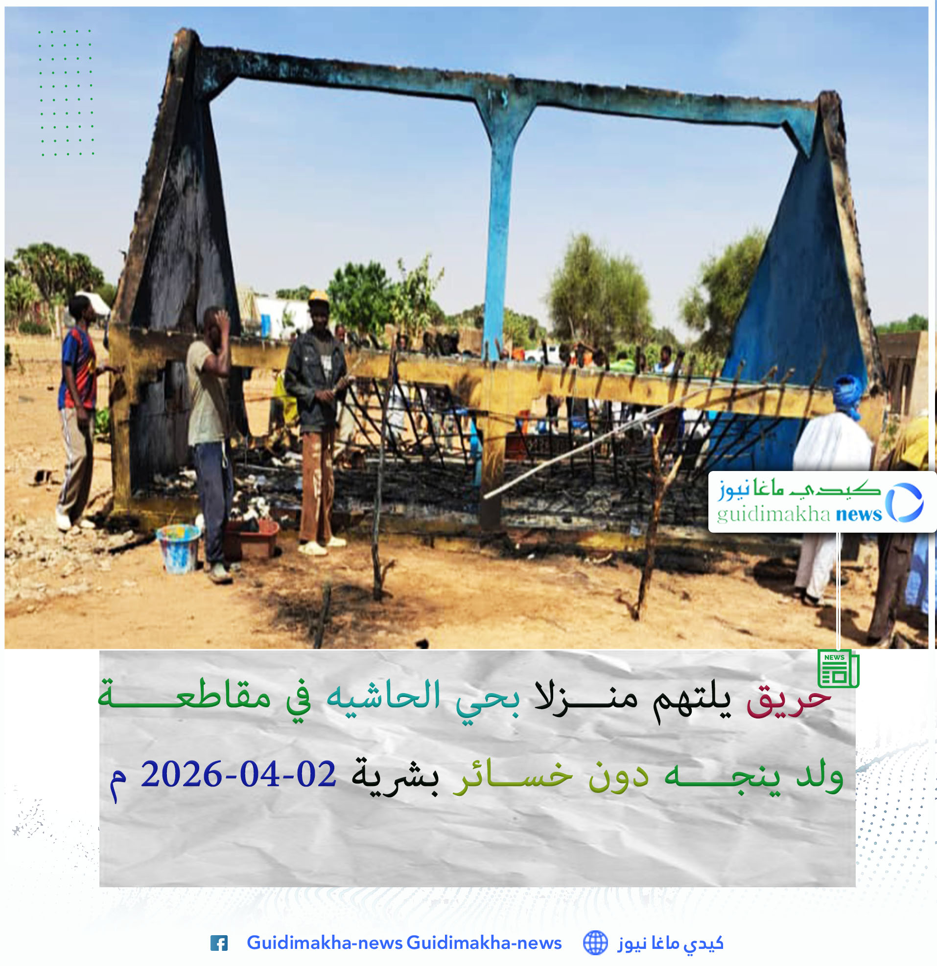 اندلع حريق، زوال اليوم، في أحد المنازل بحي الحاشية (السيف) التابع لمقاطعة ولد ينجه، ما أدى إلى احتراق المنزل بالكامل ومحتوياته من أثاث وتجهيزات.