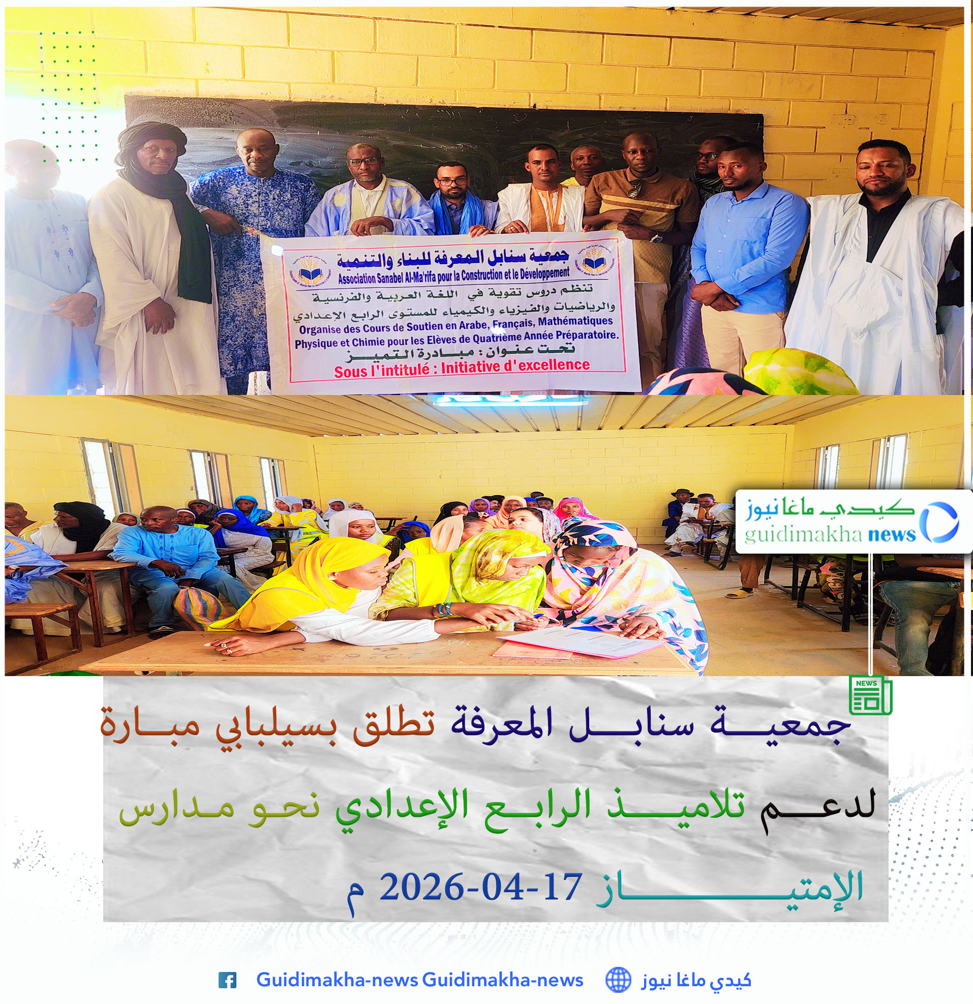 أطلقت جمعية سنابل المعرفة للبناء والتنمية، مساء اليوم الجمعة 17 إبريل، من ثانوية سيليبابي رقم 01، مبادرة تربوية تهدف إلى دعم التميز لصالح تلاميذ أقسام الرابع الإعدادي، وذلك بحضور عدد من التلاميذ المستفيدين وأوليائهم.