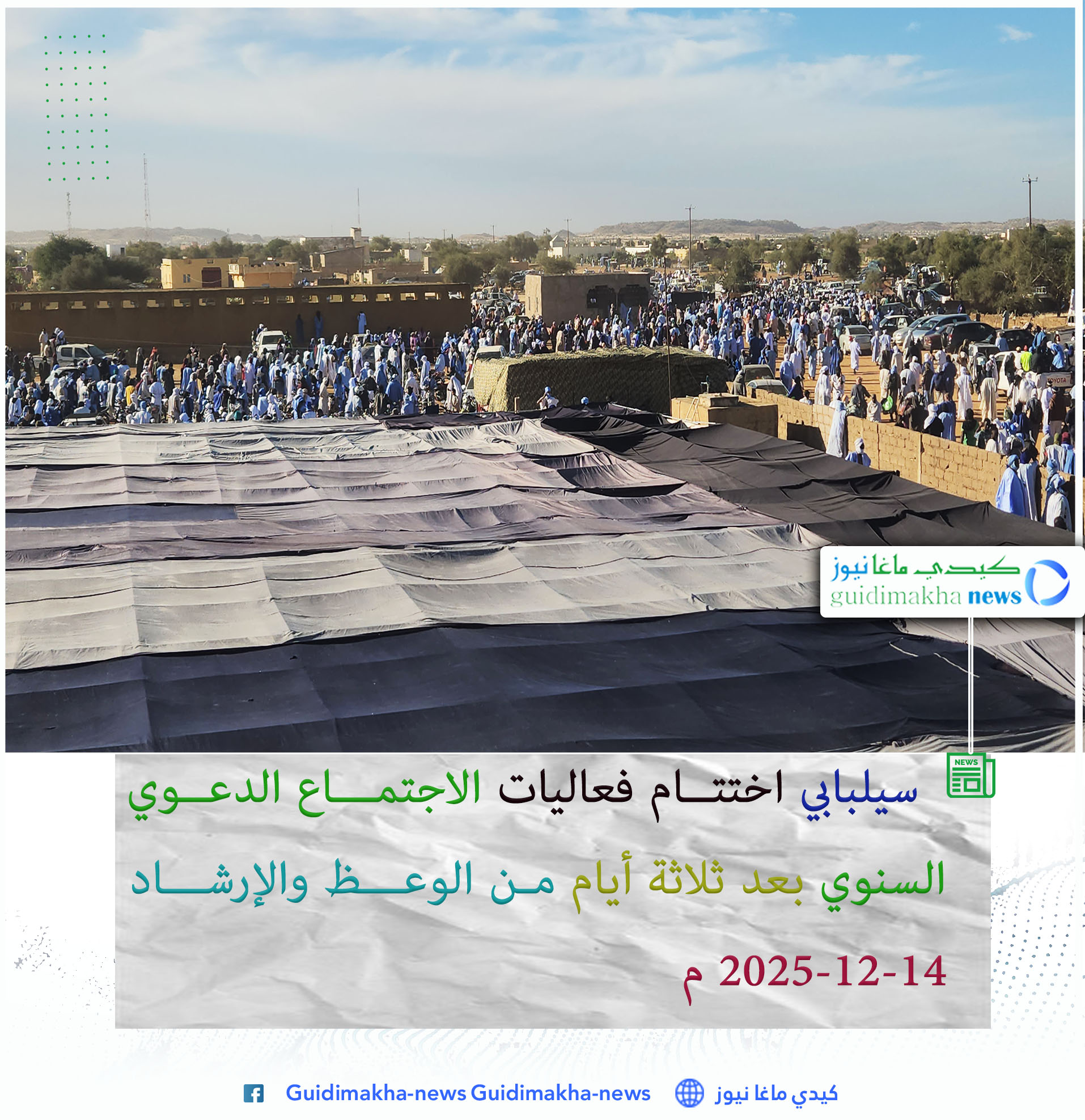 اختُتمت، صباح اليوم 14 دسمبر 2025 في مدينة سيلبابي، فعاليات الاجتماع الدعوي السنوي، وذلك بعد ثلاثة أيام متواصلة من الوعظ والإرشاد والدروس الدينية، تخللتها محاضرات في الترغيب والترهيب، وسط حضور وُصف باللافت من مختلف شرائح المجتمع.