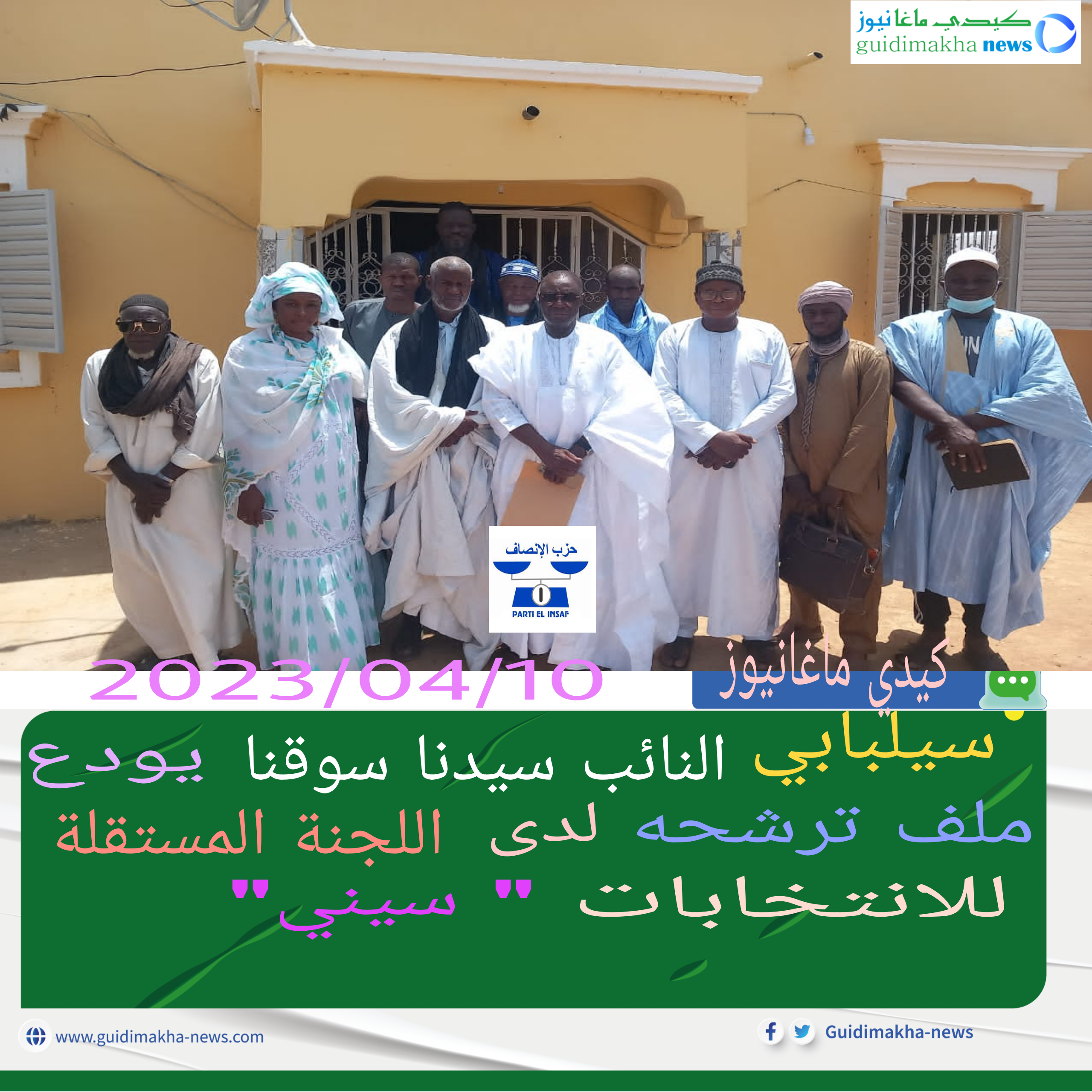 تحت إشراف معالي وزير التذيب الوطني وإصلاح النظام التعليمي السيد إبراهيم فال ولد محمد الأمين يستعد أطر التعليم بولاية كيدي ماغا مساء الأربعاء الموافق 2023/04/12 بفندق واكادو بسيلبابي حدود الساعة العاشرة مساء لاطلاق أولى سلسة الأنشطة الداعمة لمرشحي حزب الانصاف في الاستحقاقات القادمة (البلدية،البرلماية والجهوية ) المزمع تنظيمها في شهر مايو 2023 م
