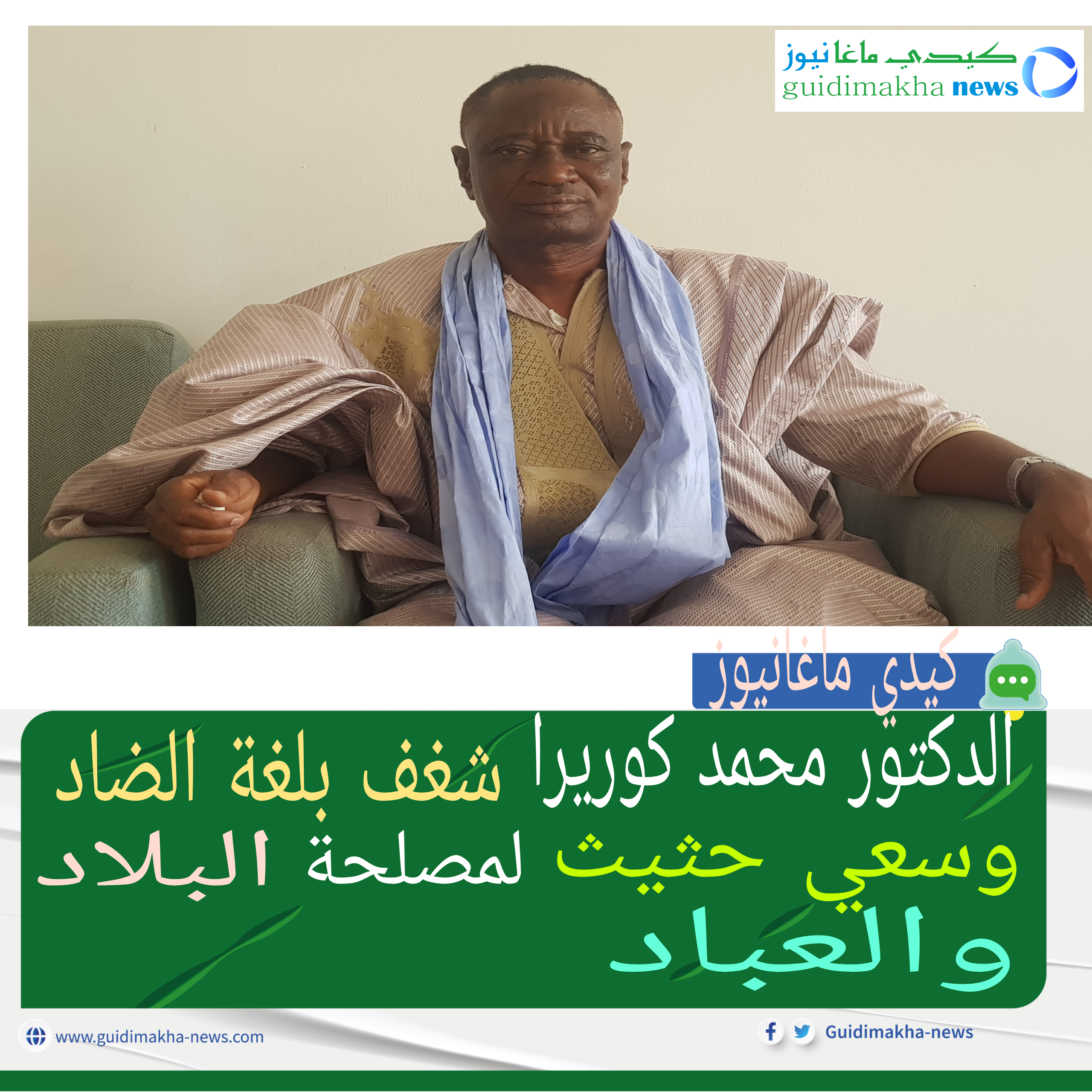 عرف الدكتور والسياسي المخضرم الأمين الاتحادي لحزب الإنصاف على مستوى ولاية كيدي ماغا السيد محمد واكي كوريرا في الأوساط المحلية والوطنية بحبه وشغف بلغة القرآن لغة الضاد وقد تجسد ذلك كله من خلال مداخلاته الرسمية وغيرها على مختلف المنابر وفي الخرجات الإعلاميةوالندوات باعتبار أن اللغة العربية هي الإطار الجامع المانع والخيط الناظم لأمة الإسلام وان تعلمها يضيف الدكتور واجب