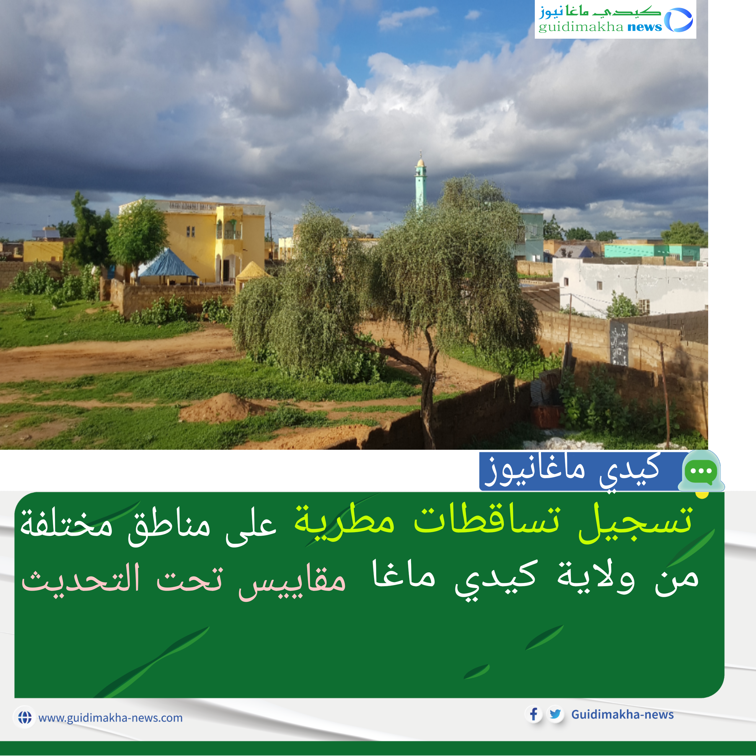 شهدت عدة مناطق من ولاية كيدي ماغاحلال ال 24 ساعة الماضية  تساقطات مطرية وذلك على النحو التالي