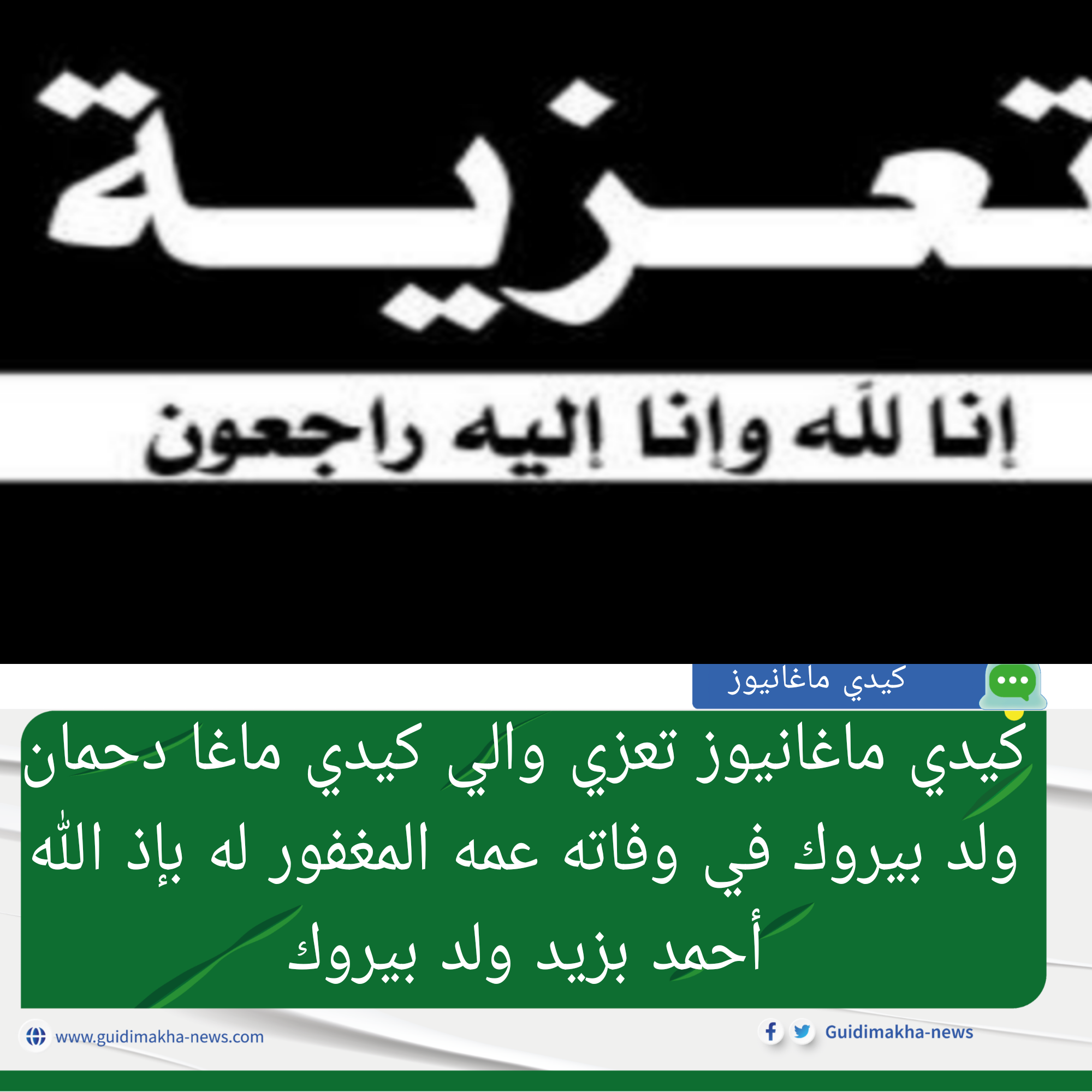 وبهذه المناسبة الأليمة، يتقدّم المدير الناشر لموقع كيدي ماغانيوز التراد ولد الإمام، وطاقم الموقع كافة، بخالص التعازي والمواساة إلى أسر