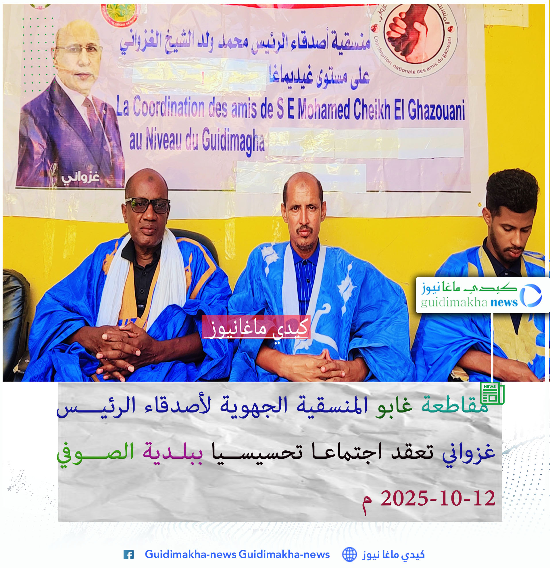 نظمت المنسقية الجهوية لأصدقاء الرئيس محمد ولد الشيخ الغزواني صباح اليوم الأحد اجتماعًا تحسيسيًا ببلدية الصوفي التابعة لمقاطعة غابو، تناول جملة من المواضيع التوعوية والاجتماعية ذات الأهمية للمواطنين.