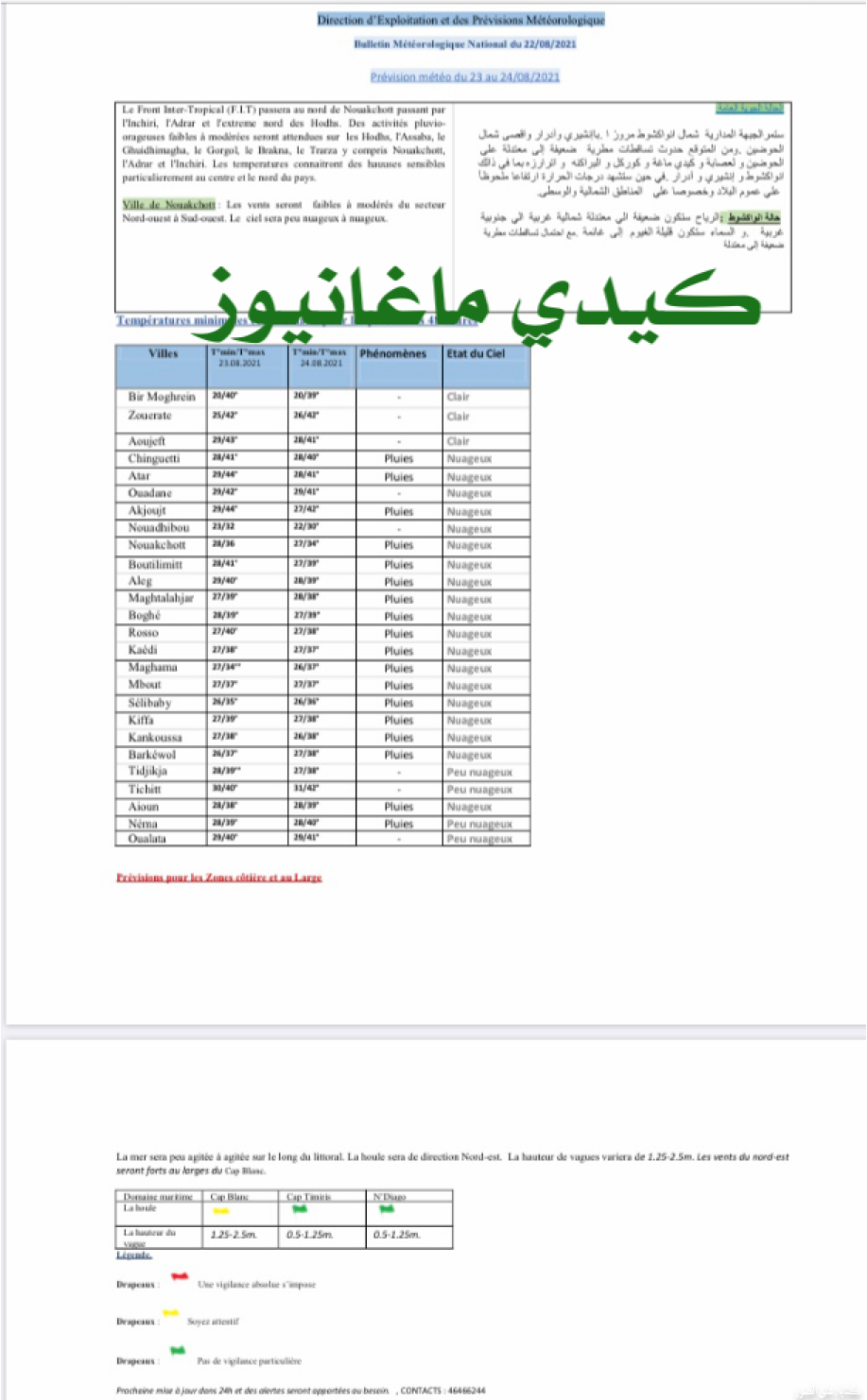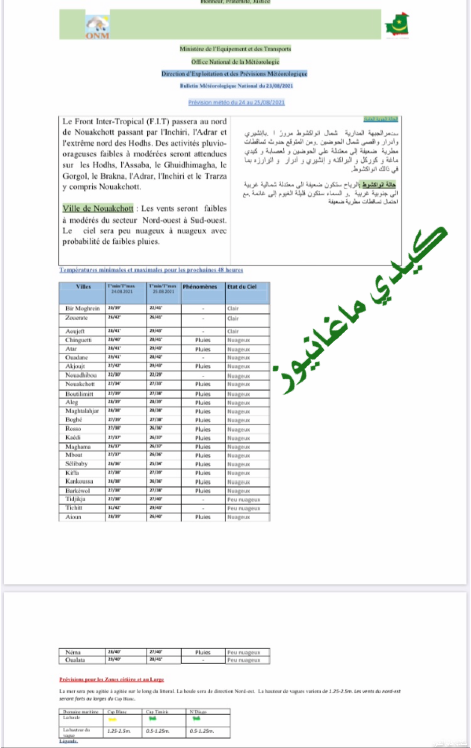 شهد بعض المناطق من ولاية كيدي ماغا ليل البارحة الجمعة 27-08-2021 تساقط كميات مطرية متوسطة وذلك على النحو التالي :