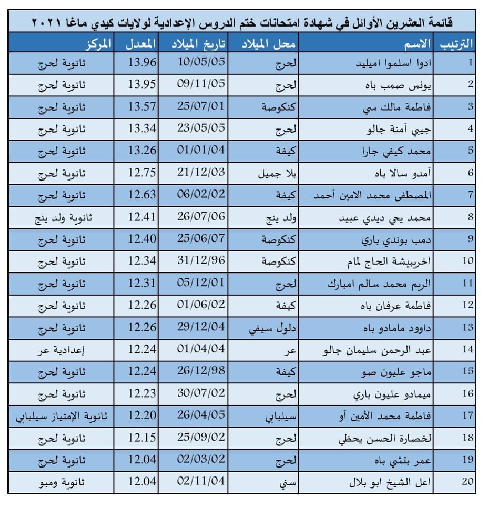 أهل عيس بابه ..............14 مم آماگه أهل المختار ..........34 من الصوفي .......................12 مم لمبقدد .......................25 مم كنكو ..........................35 مم سكابه ........................30 مم أديا
