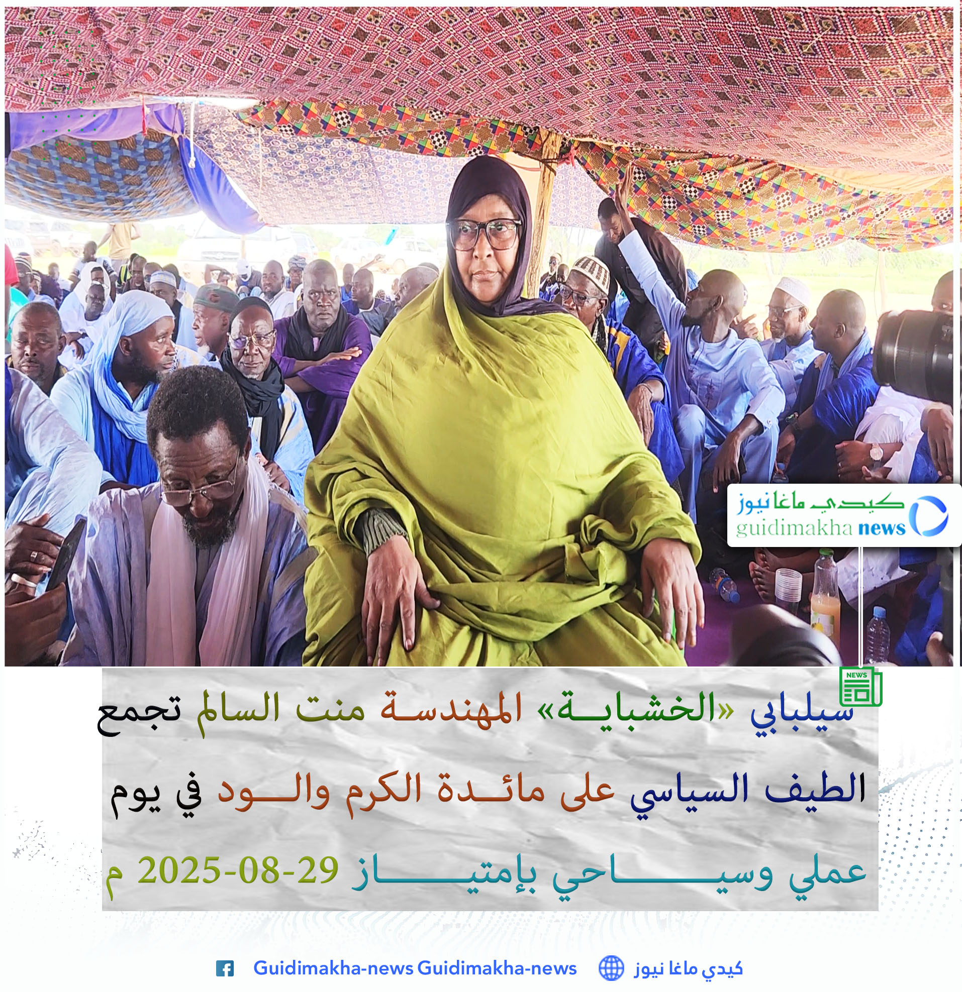 استجابة للنداء السامي لفخامة الرئيس محمد ولد الشيخ الغزواني، القاضي بتشجيع قضاء العطل داخل البلاد، نظمت الإطارة بالمكتب الموريتاني للبحث الجيولوجي المهندسة توت بنت شامخ ولد السالم صباح الجمعة 29 أغسطس 2025، فعالية تم فيها جمع طيف واسع من المجتمع الموريتاني في قرية الخشباية التابعة لبلدية حاس شكار بمقاطعة سيلبابي في ولاية كيدي ماغا.