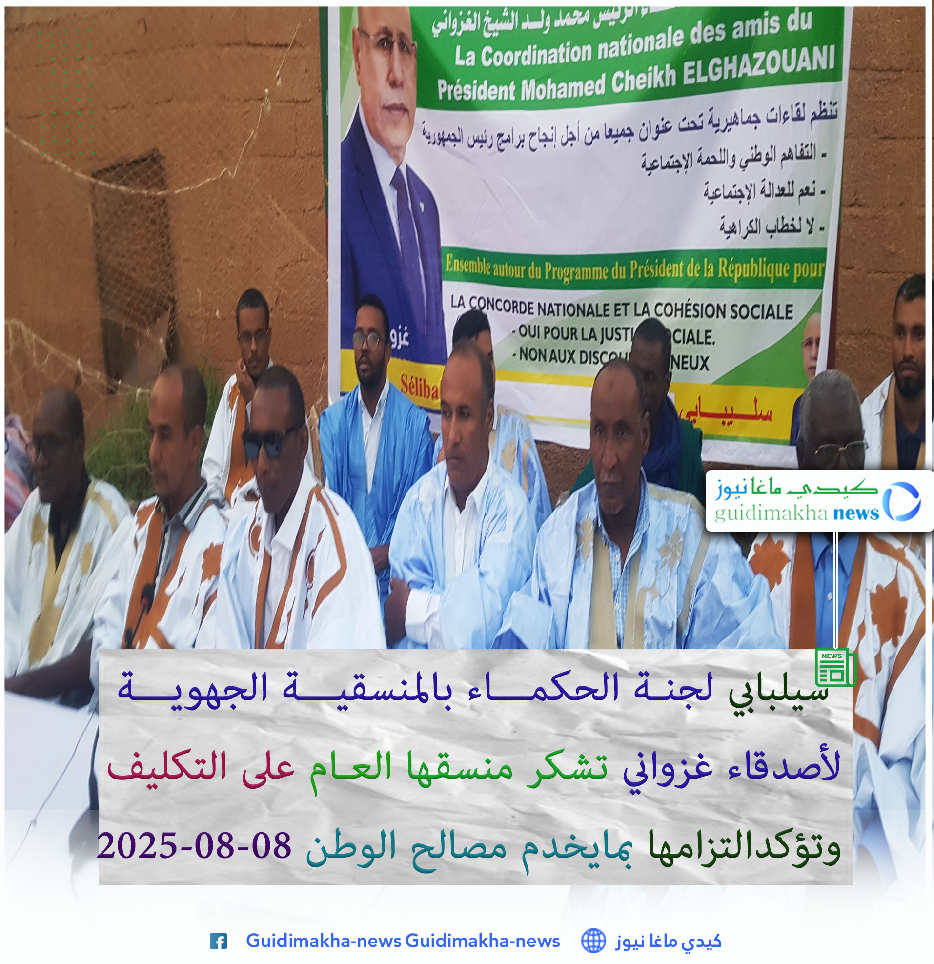 في خطوة تعكس روح التعاون والتفاني في خدمة الوطن، عبّرت لجنة الحكماء بالمنسقية الجهوية لأصدقاء غزواني على مستوى ولاية كيدي ماغا "سيلبابي " عن شكرها العميق للمنسق العام للمنسقية الوطنية لأصدقاء الرئيس محمد ولد الشيخ الغزواني جالو آمادو كورال ومن خلاله إلى أعضاء مكتبها التنفيذي على تكليفه وثقته الكبيرة بهم.