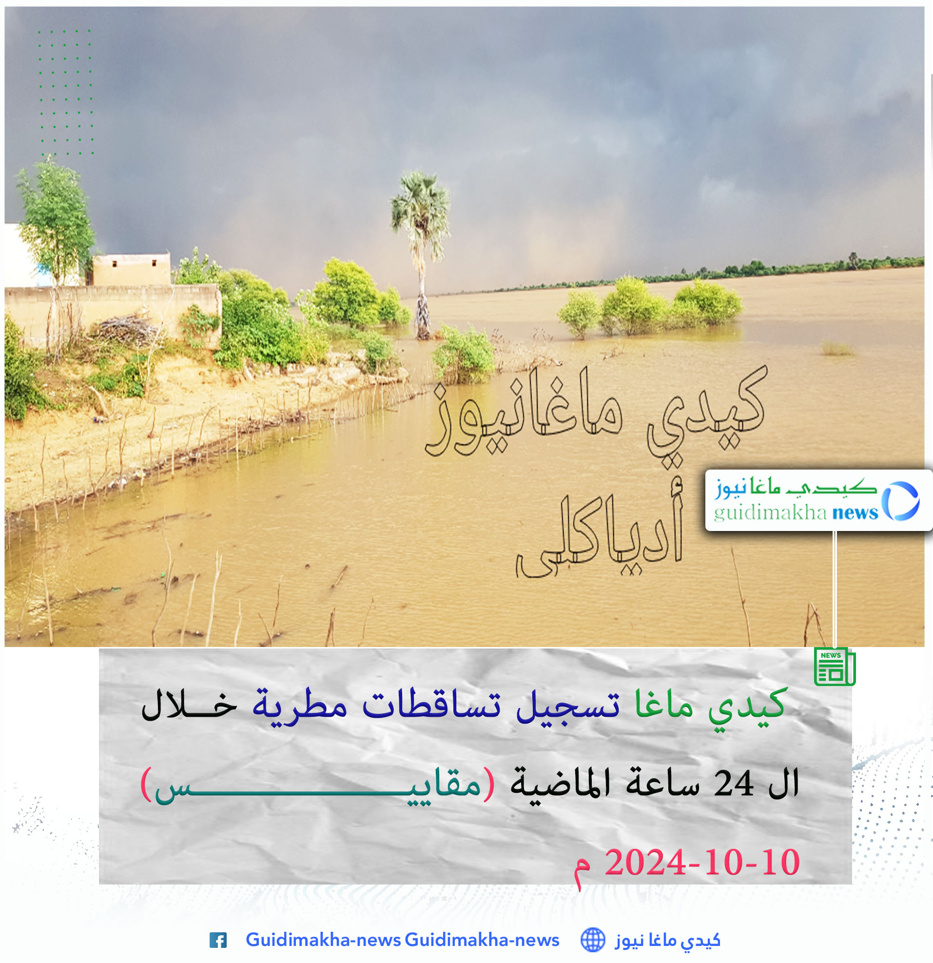 يعيش ساكنة حوض النهر السينغالي (مقاطعة غابو) منذ الجمعة الماضية وحتى اللحظة حالة ترقب وحذر شديدين نتيجة الارتفاع غير المسبوق لمنسوب النهر السينغالي نجم عنها اضرار مادية ونزوح مستمر لعشرات الأسر في عدة قرى ومدن مطلة على النهر منها غابو ،سلو وأدياكلى التي بدأت المياه فيها تشق طريقتها داخل الأحياء والأزقة