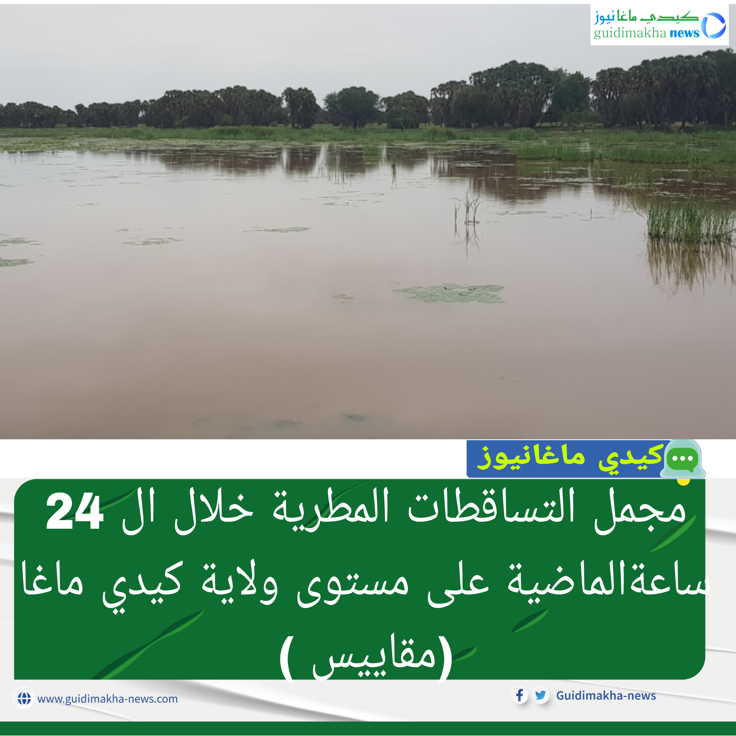 شهدت عدة مناطق من ولاية كيدي ماغا خلال ال 24 ساعةالماضية هطل كميات مطرية تراوحت مابين الغريرة والمتوسطة وذلك على النحو التالي