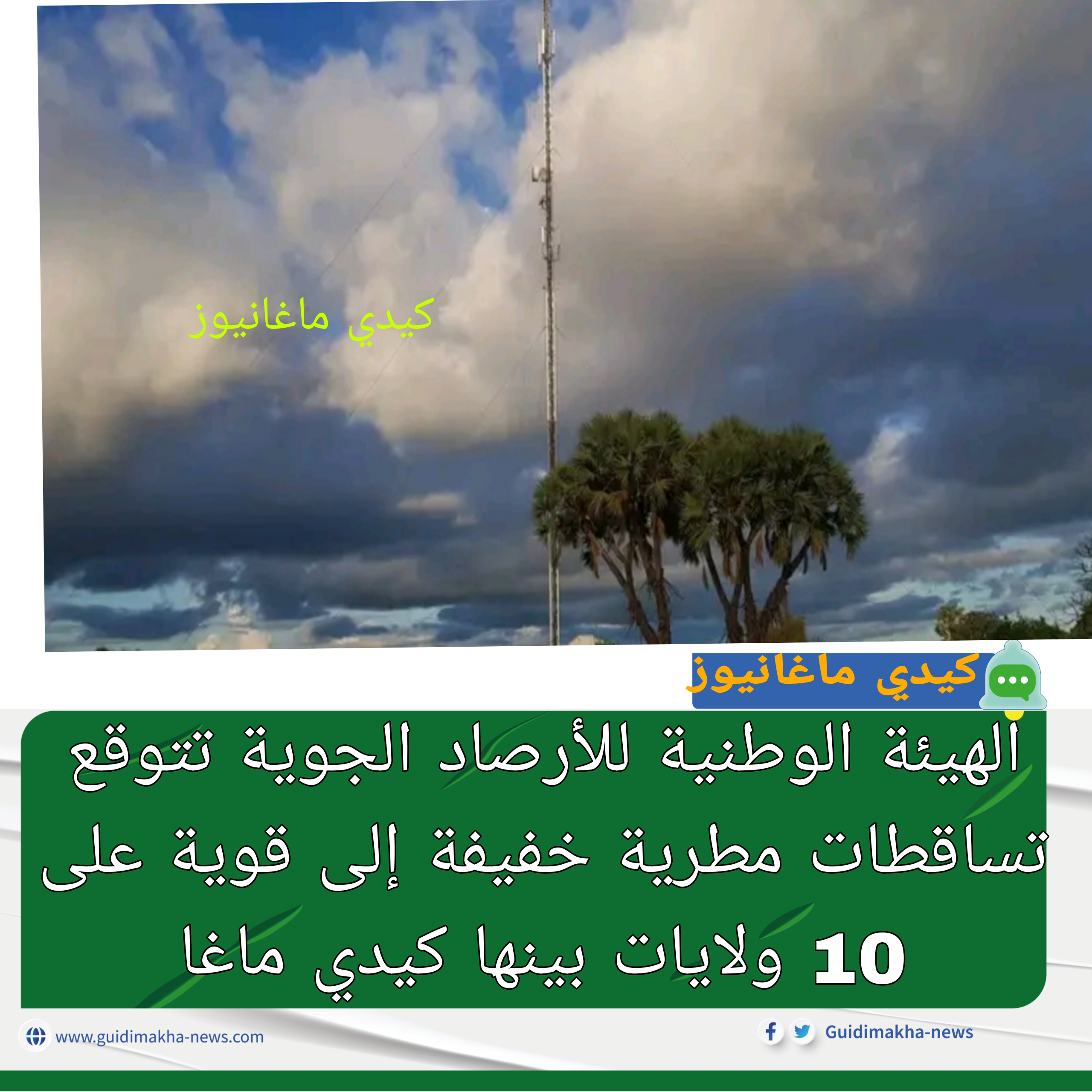 الهيئة الوطنية للأرصاد الجوية تتوقع تساقطات مطرية خفيفة إلى قوية على 10 ولايات بينها كيدي ماغا