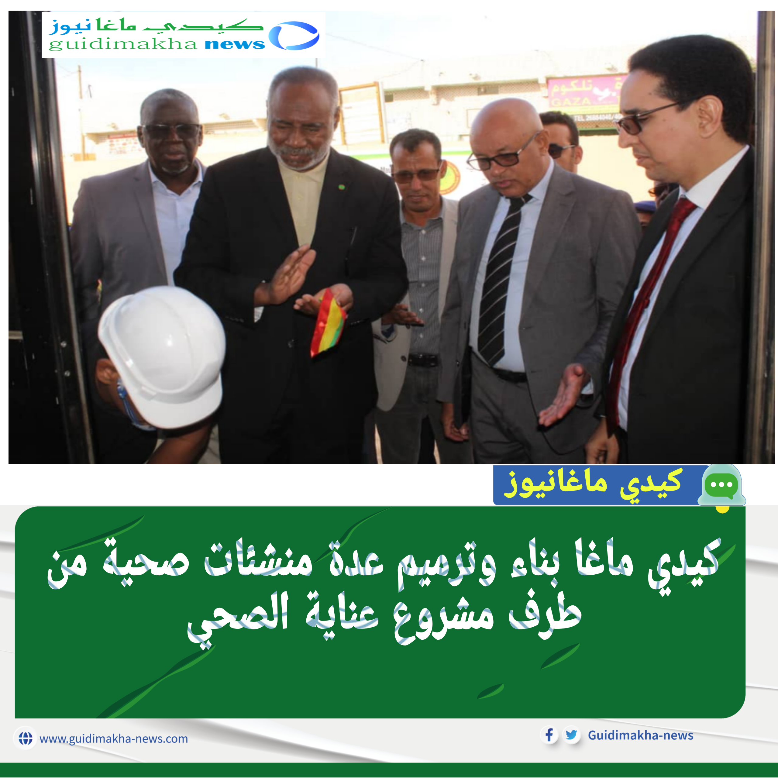 أشرف الأمين العام لوزارة الصحة صاح أمس الثلاثاء السيد محمد الأمين ولد محمد الحاج رفقة والي كيدي ماغا السيد أحمد ولد محمد محمود ولد الهديه على تدشين توسعة الإدارة الجهوية للصحة بعاصمة الولاية سيلبابي المعد من طرف مشروع دعم النظام الصحي "عناية" بالإضافة إلى عدة إنجازات منها :