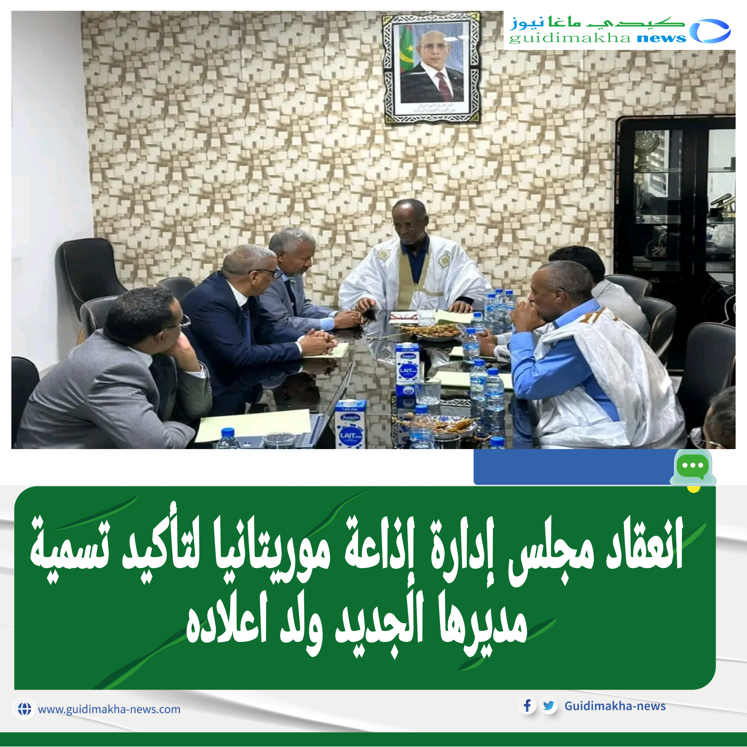 انعقد زوال اليوم الإثنين بمباني إذاعة موريتانيا اجتماع مجلس الإدارة في دورةٍ طارئة برئاسة رئيس مجلس الإدارة السيد إبراهيم ولد عبد الله وذلك لتأكيدِ تسميةِ المدير العام الجديد لإذاعةِ موريتانيا د السيد محمد ولد عبد القادر ولد اعلاده وبحضور المدير العام السابق السيد محمد الشيخ ولد سيدي محمد الذي هنأ خلفه بثقةِ فخامة رئيسِ الجمهورية السيد محمد ولد الشيخ الغزواني وق
