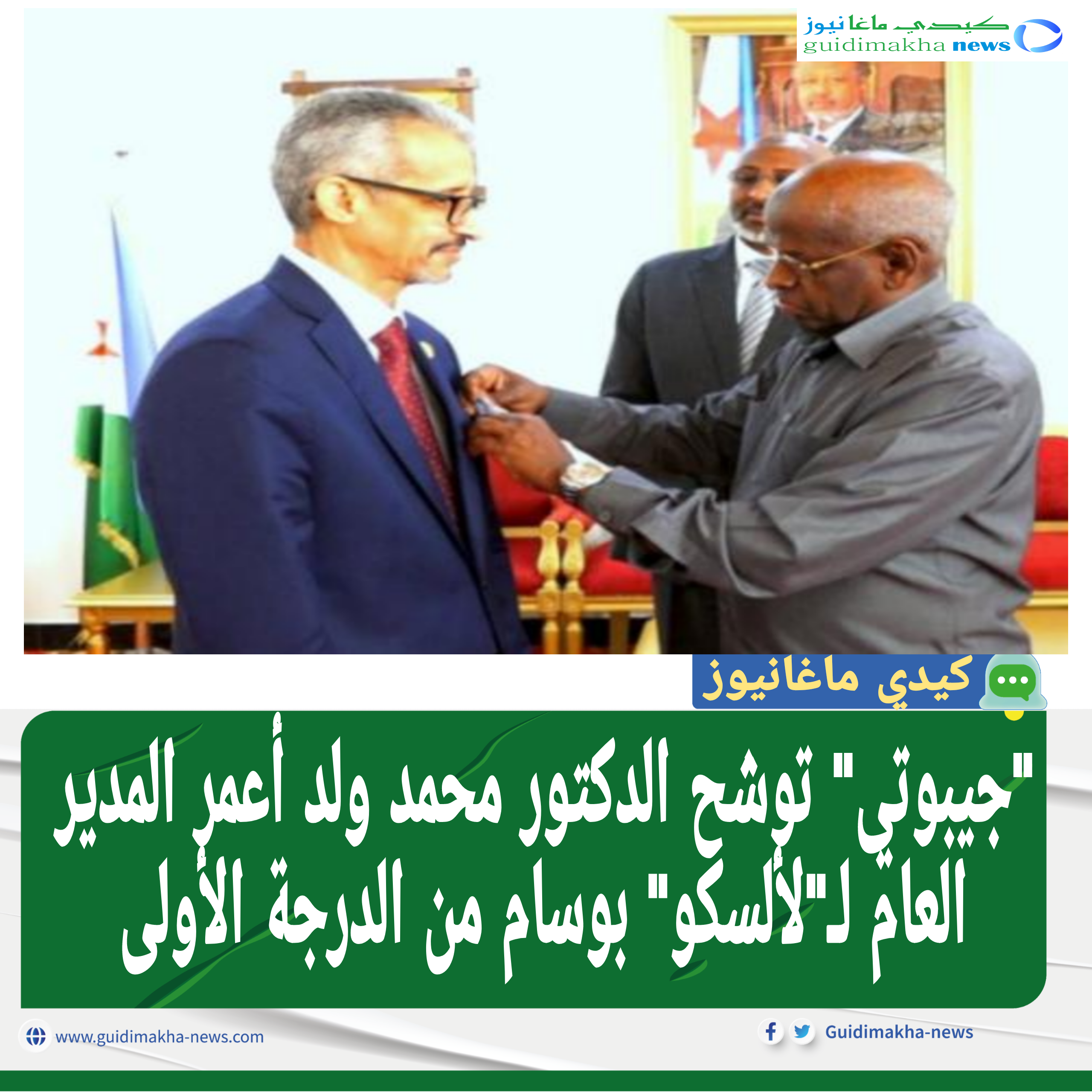 جيبوتي توشح الدكتور محمد ولد أعمر المدير العام لـ"لألسكو" بوسام من الدرجة الأولى