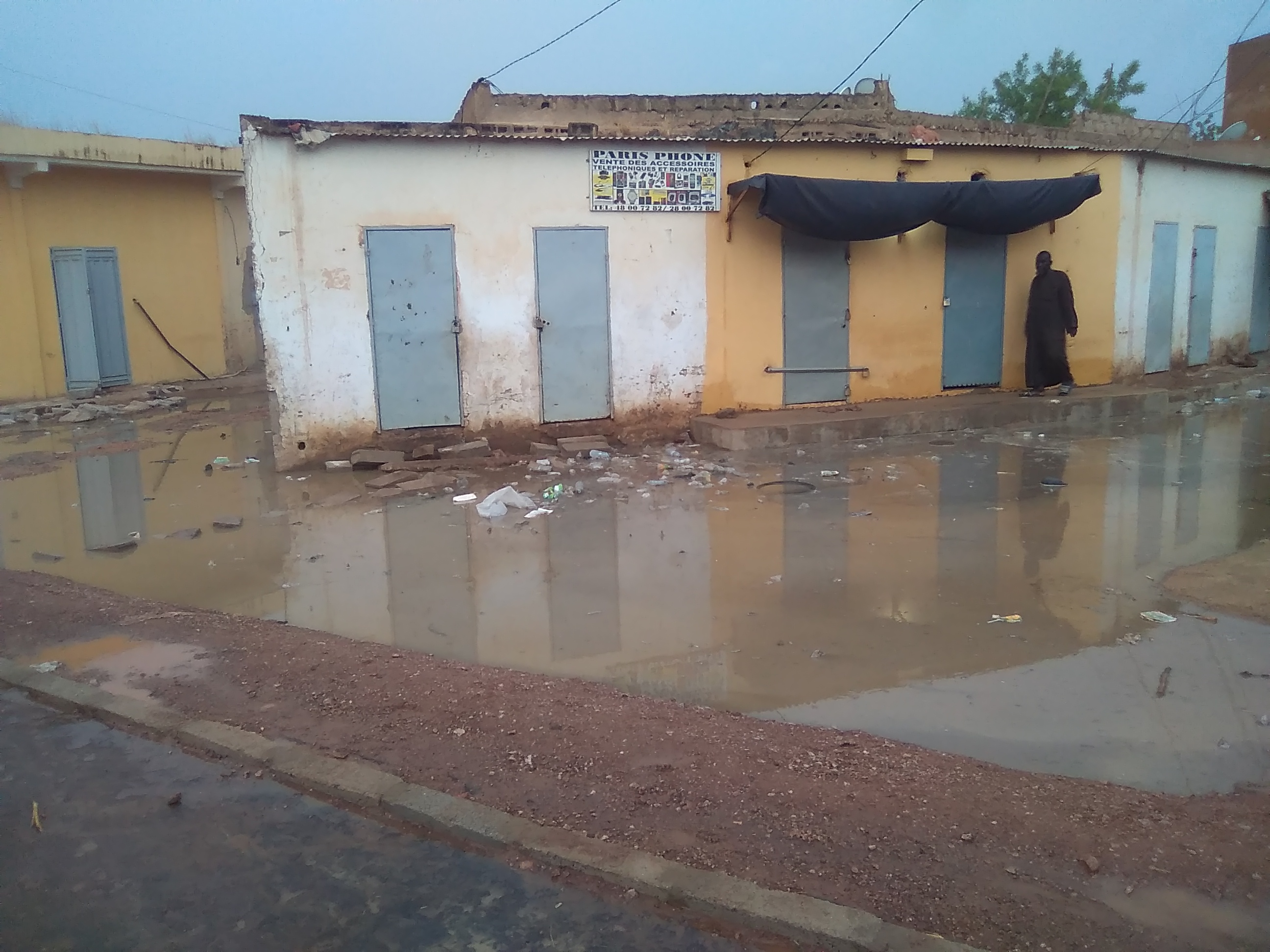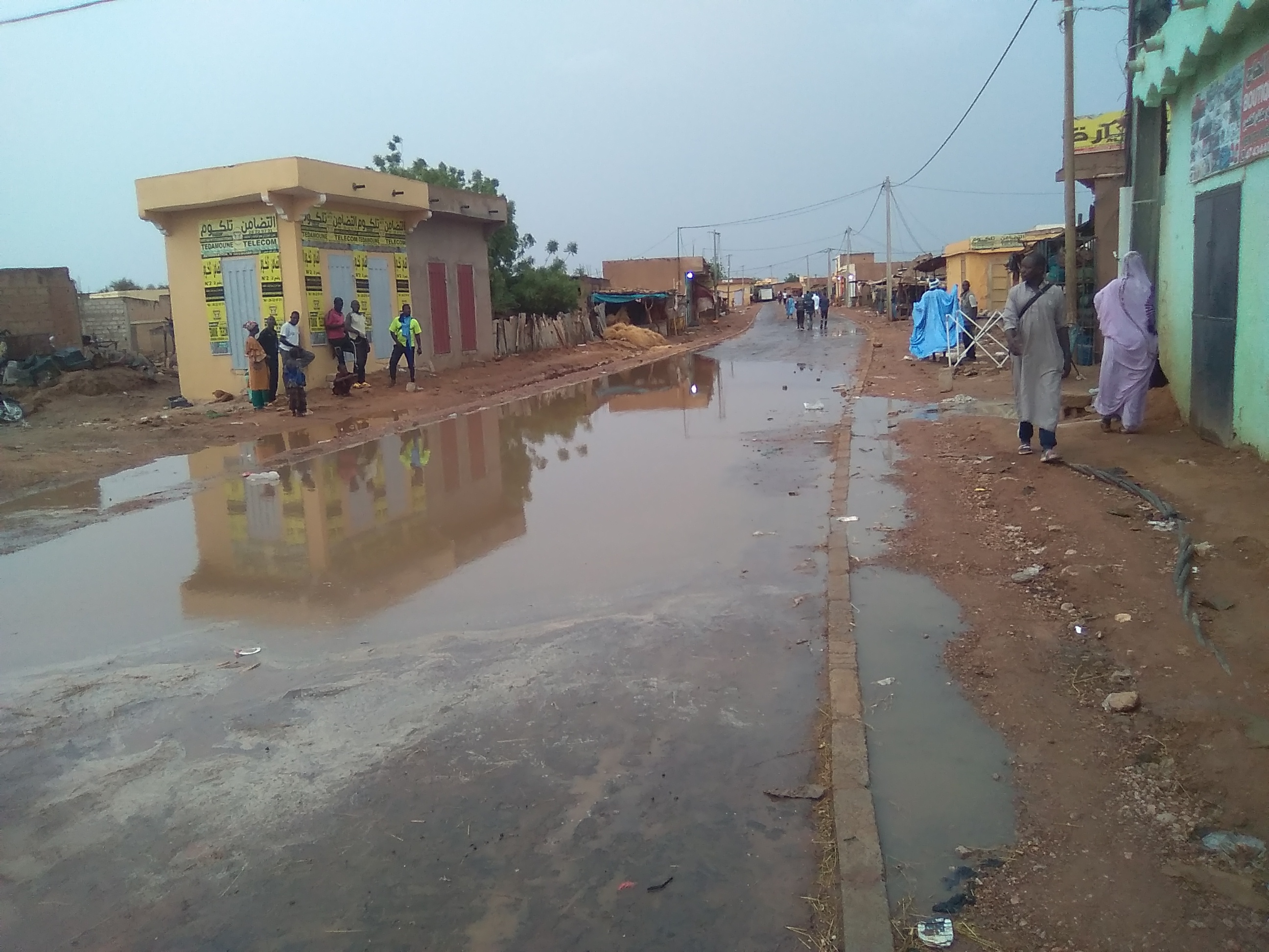 أما المحور الثاني والأخير المار هو الآخر من أمام مبنى الولاية غربا باتجاه نهاية حي تادريص شرقا مرورا بمعلممة سيلو فقد غمرت المياه أجزاء كبيرة منه هذا المساء بالرغم من أنها أمطار خفيفة غير أن عدم وجود قنوات صرف للمياه المتجمعة مماقد يزيد الطين بلة ويفاقم من معاناة السكان التي تتجدد مع حلول فصل كل خريف فهل وضعت الجهات المنفذ مياه الأمطار في الحسبان أم أن بناء الطرق شيئ والصرف الصحي شيئ آخر؟!