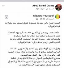واغتنم وزير الدفاع والمحاربين القدماء المالي الفرصة للتعبير عن إدانته الشديدة للهجوم الذي نفذه جهاديون ضد شركة الصرف الصحي وأشغال النقل والصيانة، والشركة الوطنية الصينية للإنشاءات الدولية (كوفيك)، على بعد 55 كيلومتر عن قرية كوالا (نارا).