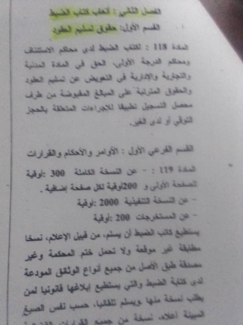 وتحت الرغبة و إلحاح المتضررين سعت كيدي ماغانيوز إلى مقابلة طرفي الخلاف لاستجلاء الأمر فتحفظ طرف وتحدث إلينا الطرف الآخر ( كتاب الضبط ) الذين رفضوا فكرة مجانية استصدار الأحكام جملة وتفصيلا متشبثين بمرسوم رقم 2009/208 الذي يحدد تعريف المصاريف القضائية في مجال للجنايات والجنح والمخالفات وفي المجال المدني والتجاري والإداري.