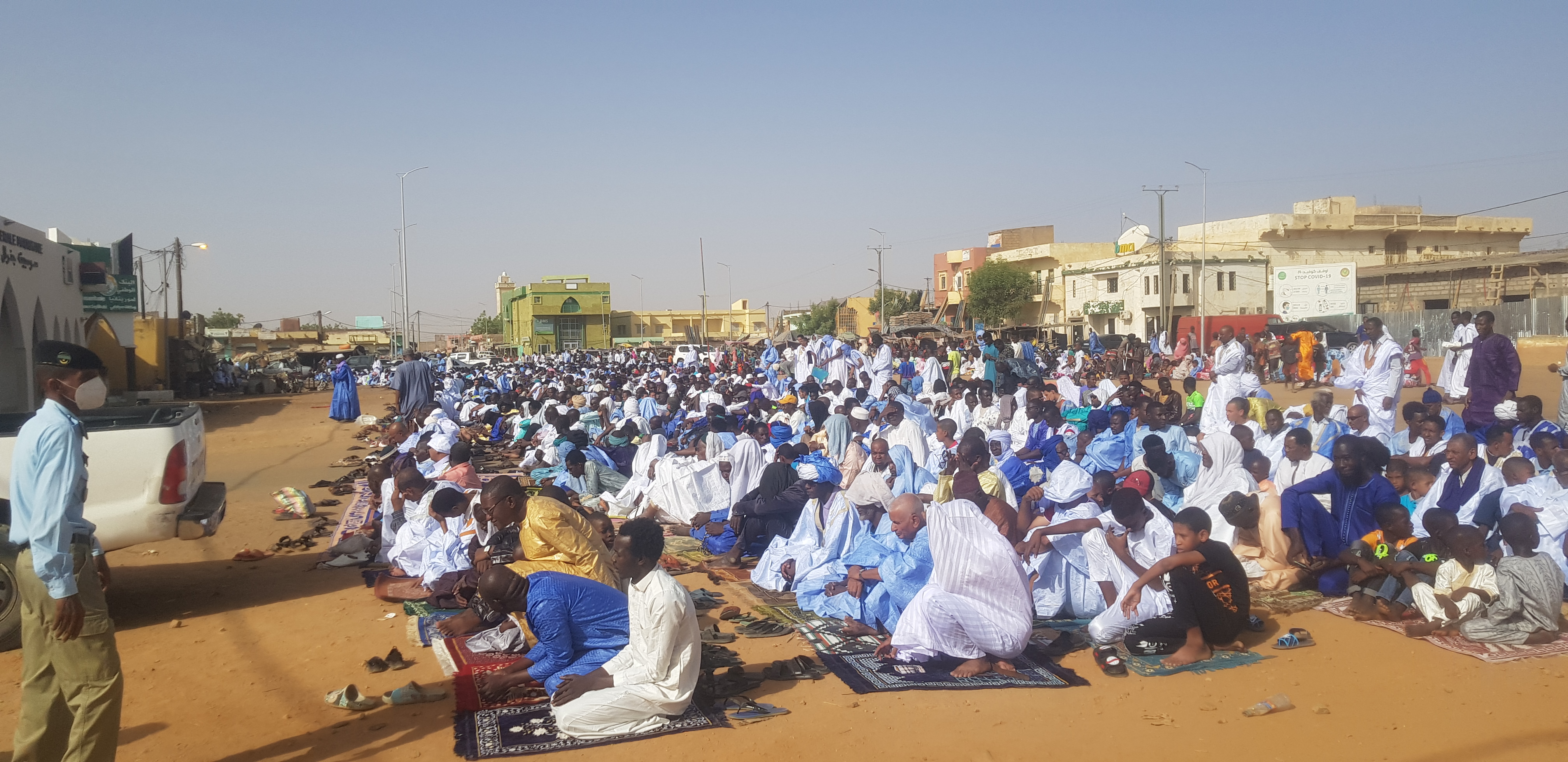 أم فضيلة الإمام آو صبيحة اليوم الإثنين 2022/05/02 بالساحة العمومية الواقع قبالة مبنى ولاية كيدي جموع من المصلين في مقدمتهم والي الولاية أحمد ولد الديه رفقة السلطات الإدارية والأمنية وشخصيات مرجعية