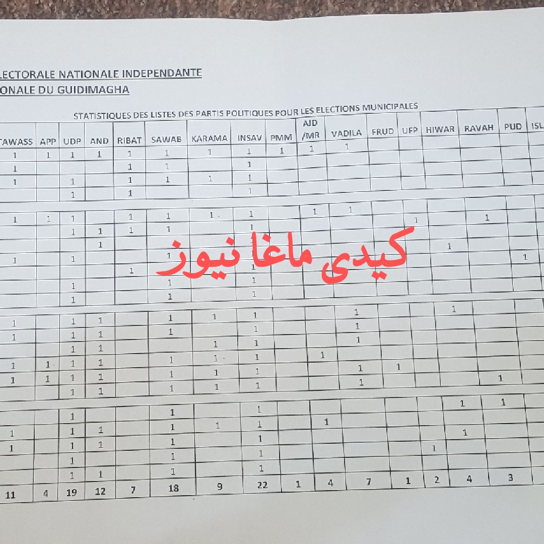 يتنافس في ولاية كيدي ماغا اليوم اكثر من 18 حزبا سياسيا على 22 بلدية حيث بلغت اللوائح المنبثقة عن تلك الأحزاب المتنافسة 127 لائحة موزعة على النحو التالي(خارطة التوزيع)
