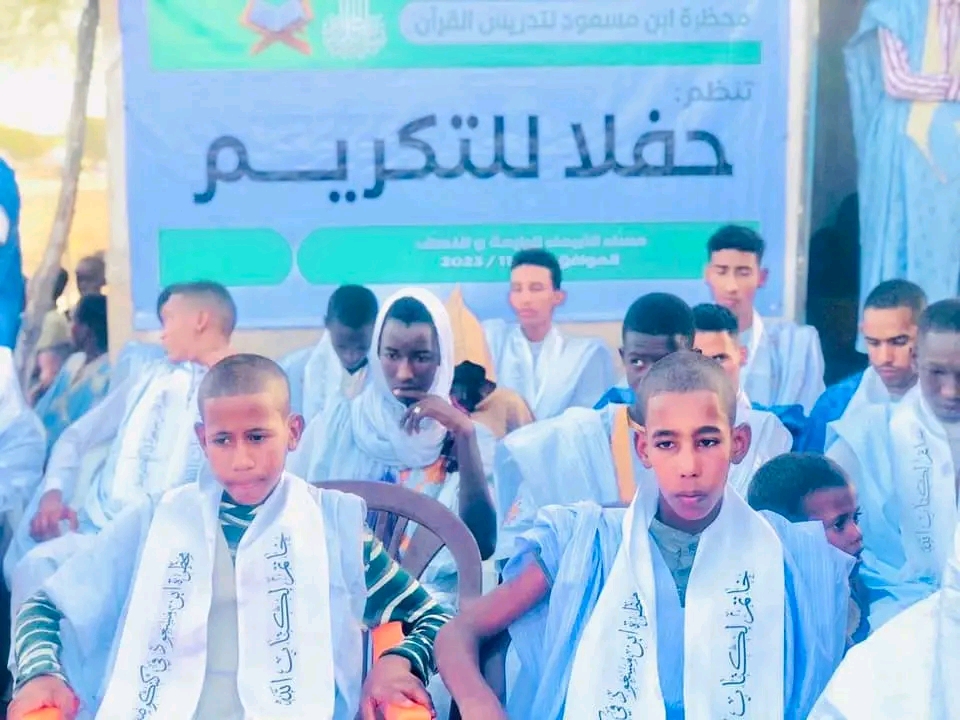 نظمت مساء أمس الأربعاء محظرة ابن مسعود بقرية أهل الجيلاني بكنكوصة 2 (الحاشية ) حفل بهيج بمناسة تخرج الدفعة السادسة من حفظة كتاب الله العزيز والمكونة هذه المرة من سبعة عشر طالبا محظريا بينهم ثلاثة سيدات