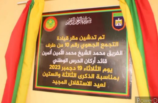أشرف مساء أمس الثلاثاء قائد أركان الحرس الوطني الفريق محمد الشيخ ولد محمد الأمين ألمين "البرور" بمدينة سيلبابي رفقة الوالي السيد أحمد ولد محمد محمود ولد الديه، على تدشين المقر الجديد للتجمع الجهوي رقم 10 للحرس الوطني المكون من طابقين يضمان مجموعة من المكاتب ومقرات للمصالح الإدارية واللوجستية