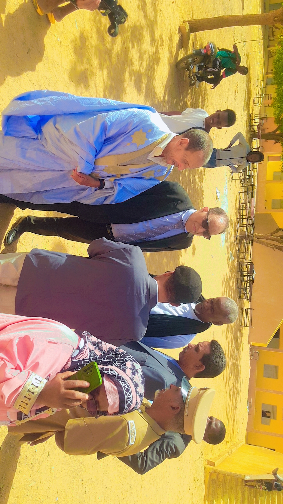 رافق البعة خلال الزيارة مستشار والي كيدي ماغا المكلف بالشؤون الإدارية والقانونية محمد سالم سيدي محمد المعلوم وحاكم سيلبابي المساعد والمدير الجهوى للتهذيب الوطني وإصلاح النظام التعليمي سيدي ولد فراح والمديرة الجهوية للعمل الاجتماعي كيطانة محمد وأعضاء من رابطة آباء التلاميذ