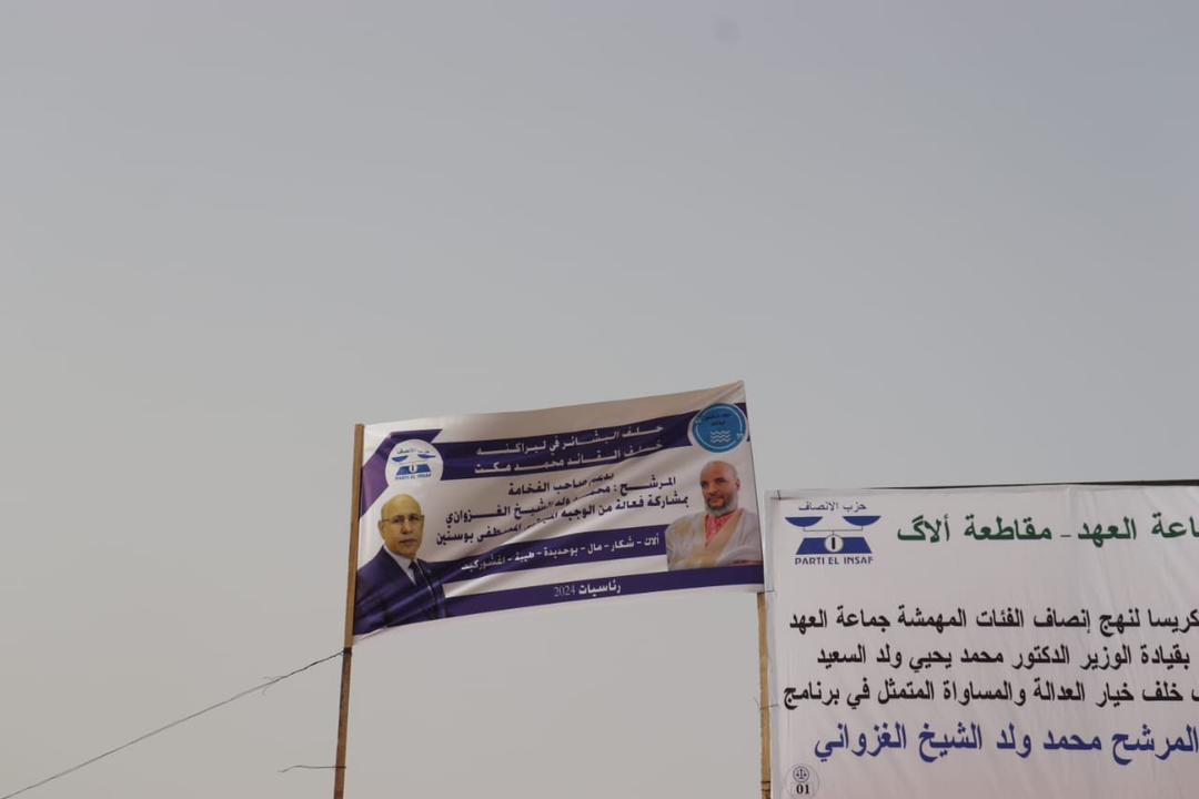أوضحت الصور الأولى من مدينة ألاگ عاصمة ولاية لبراكنة حضورا بارزا لحلف البشائر بقيادة رئيس الجمعية الوطنية محمد بمب مكت.