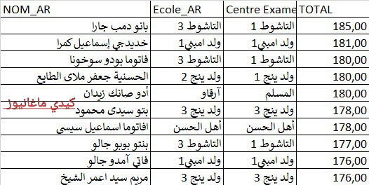 09 أفاتي أمدو جالو مدرسة ولد أمبني 01 المعدل `176 نقطة