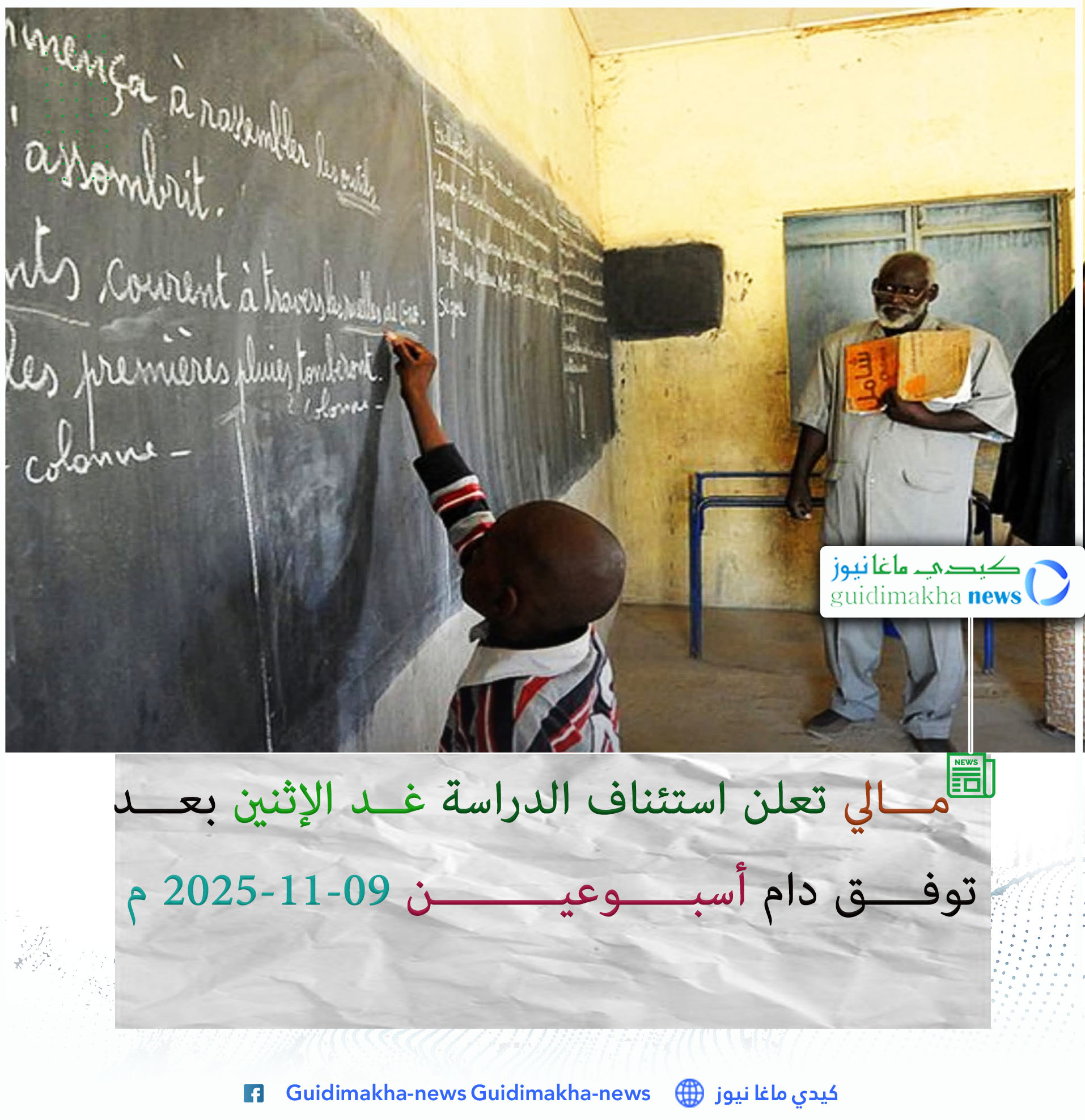 أعلنت وزارة التربية الوطنية في مالي استئناف الدراسة غدا الاثنين على عموم التراب الوطني، بعد توقف استمر أسبوعين نتيجة تأثير أزمة الوقود على تنقلات التلاميذ والطاقم التربوي وما سببته من اضطرابات لوجستية.