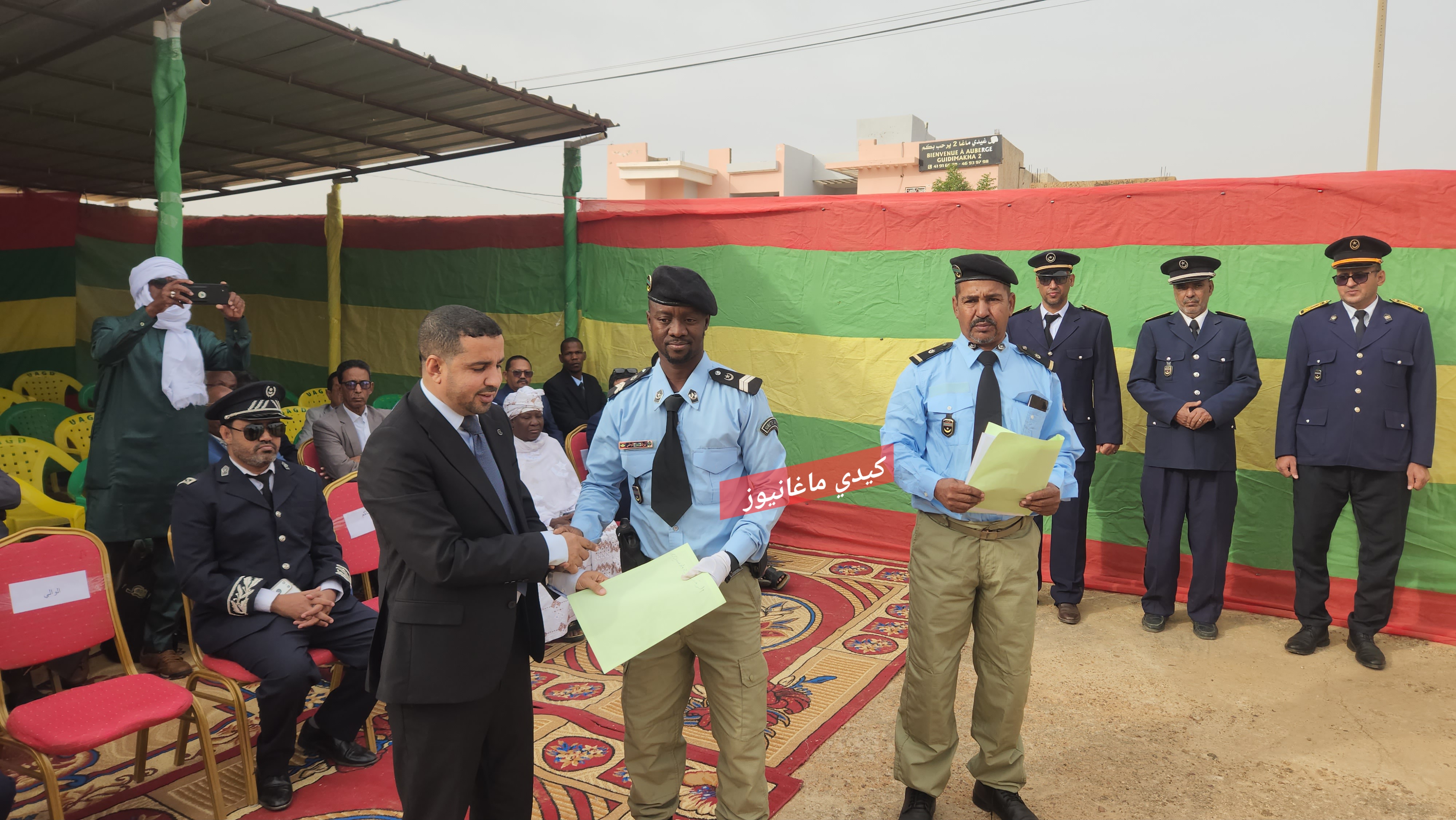 كما تم تكريم عنصرين من الشرطة هما : الرقيب يب ولد سيدي والوكيل سيدي ولد أفلواط على هامش الاحتفالية التي حضرتها السلطات الإدارية والأمنية والقضائية والبلدية والجهة بمباني الإدارة الجهوية للأمن بسيلبابي عاصمة ولاية كيدي ماغا
